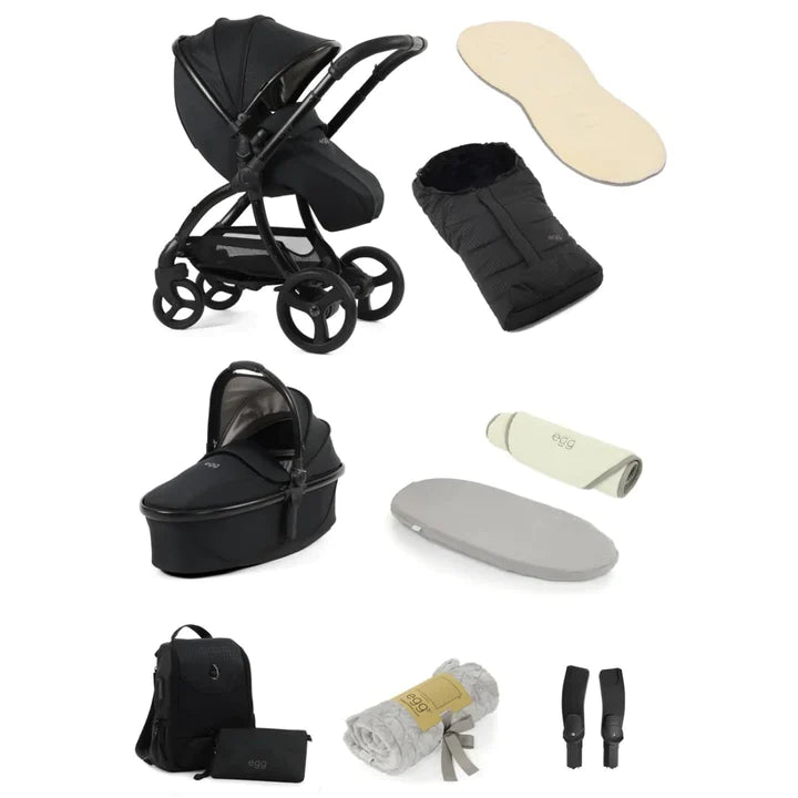Stroller includes: Rain cover, insect net, apron and reversible fleece liner. Suitable from 6 months to 25kg (from birth with the egg3®carrycot).